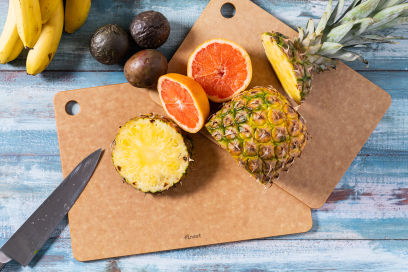 De sfeervolle ATMK Finest snij- en serveerplanken worden gemaakt van zaagafval en dunne laagjes gerecycled papier. Vele laagjes papier en houtvezels worden onder hoge druk stevig op elkaar geperst met hars. Zo ontstaat een duurzame, robuuste en slijtvaste plank die ook nog eens in de vaatwasmachine kan. Voor onze Finest planken hoeven dus geen bomen gekapt te worden in een productiebos, wat het hét alternatief maakt voor houten en bamboo serveerplanken. Zo wordt het milieu minder belast en proberen we ons steentje bij te dragen aan de circulaire economie. De beste snijplanken die je kan krijgen!